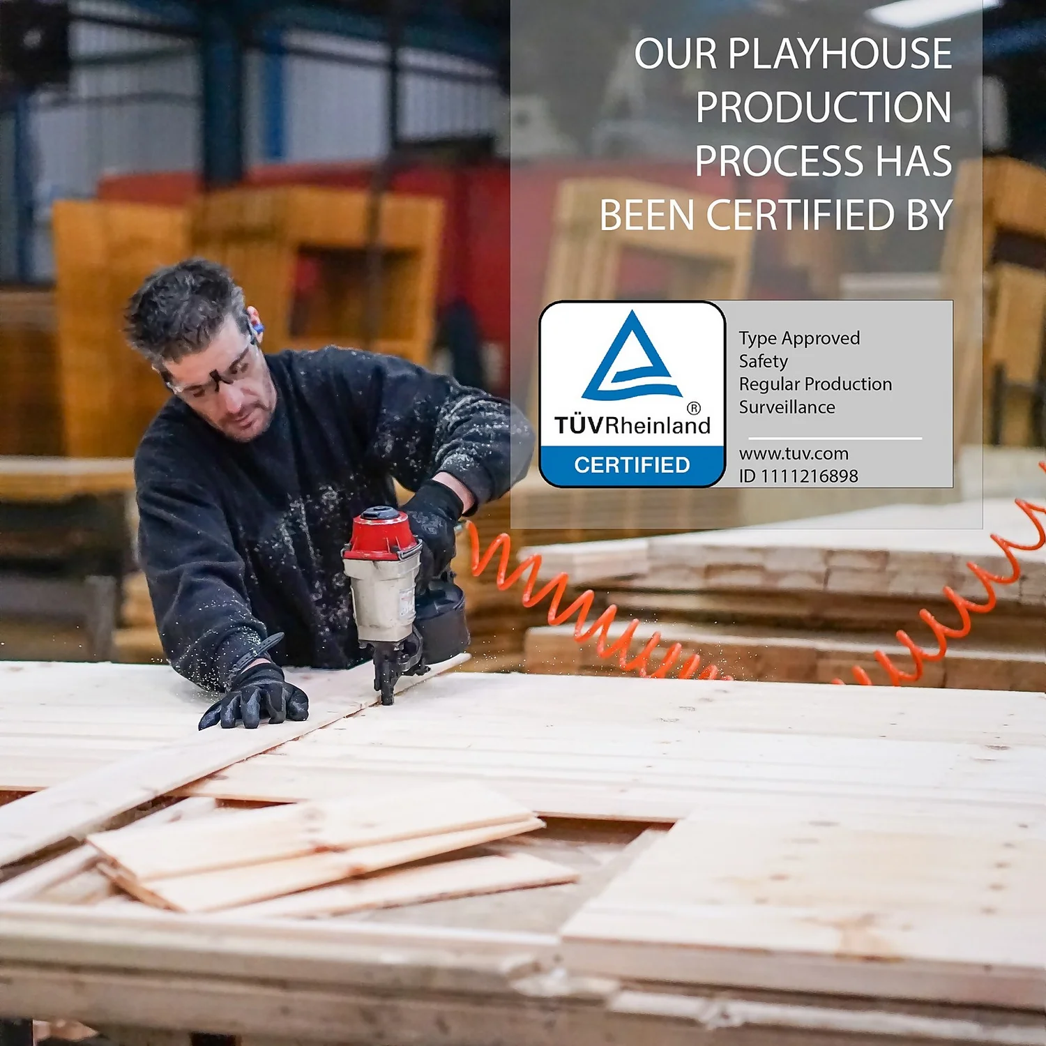 This two storey cottage inspired playhouse in which your children can have fun, play and let their imaginations run wild! Featuring a minimum 12mm finger gap around the door, rounded timbers and ventilation holes, our playhouses are EN71 certified and UKCA Marked, to ensure they’re safe for your children to play with every day.