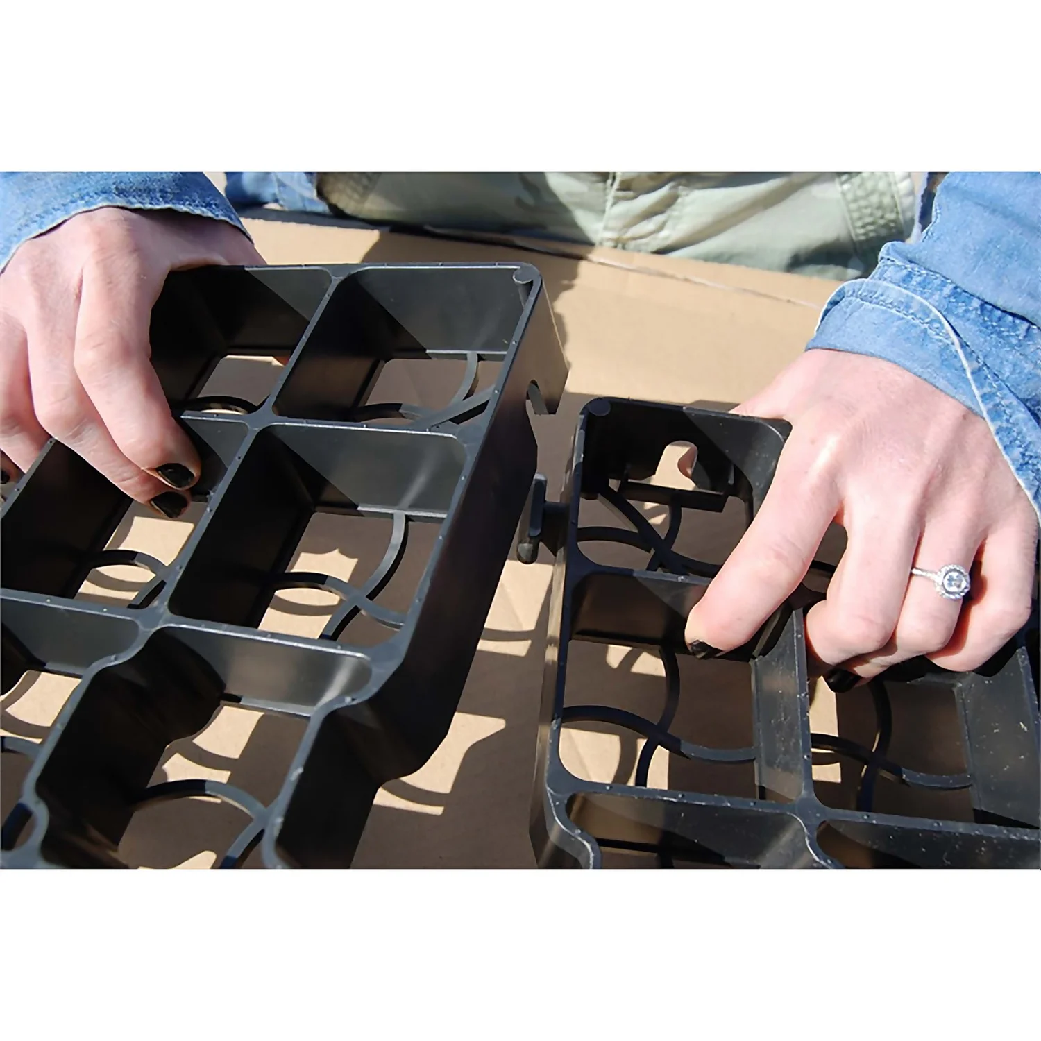 - Lightweight pavers measuring 500 x 500 x 40mm deep that interlock with self-fastening connectors making them easy to lay. Pavers can be trimmed to size with a hacksaw.