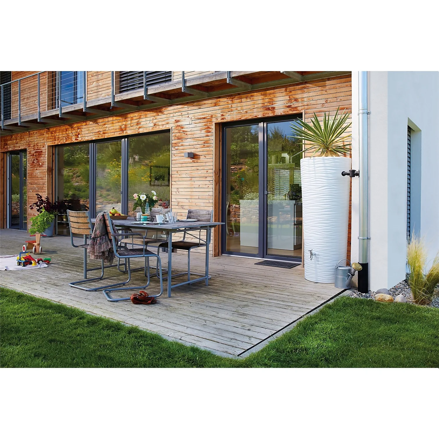 - 2 functions: rainwater storage and decoration
