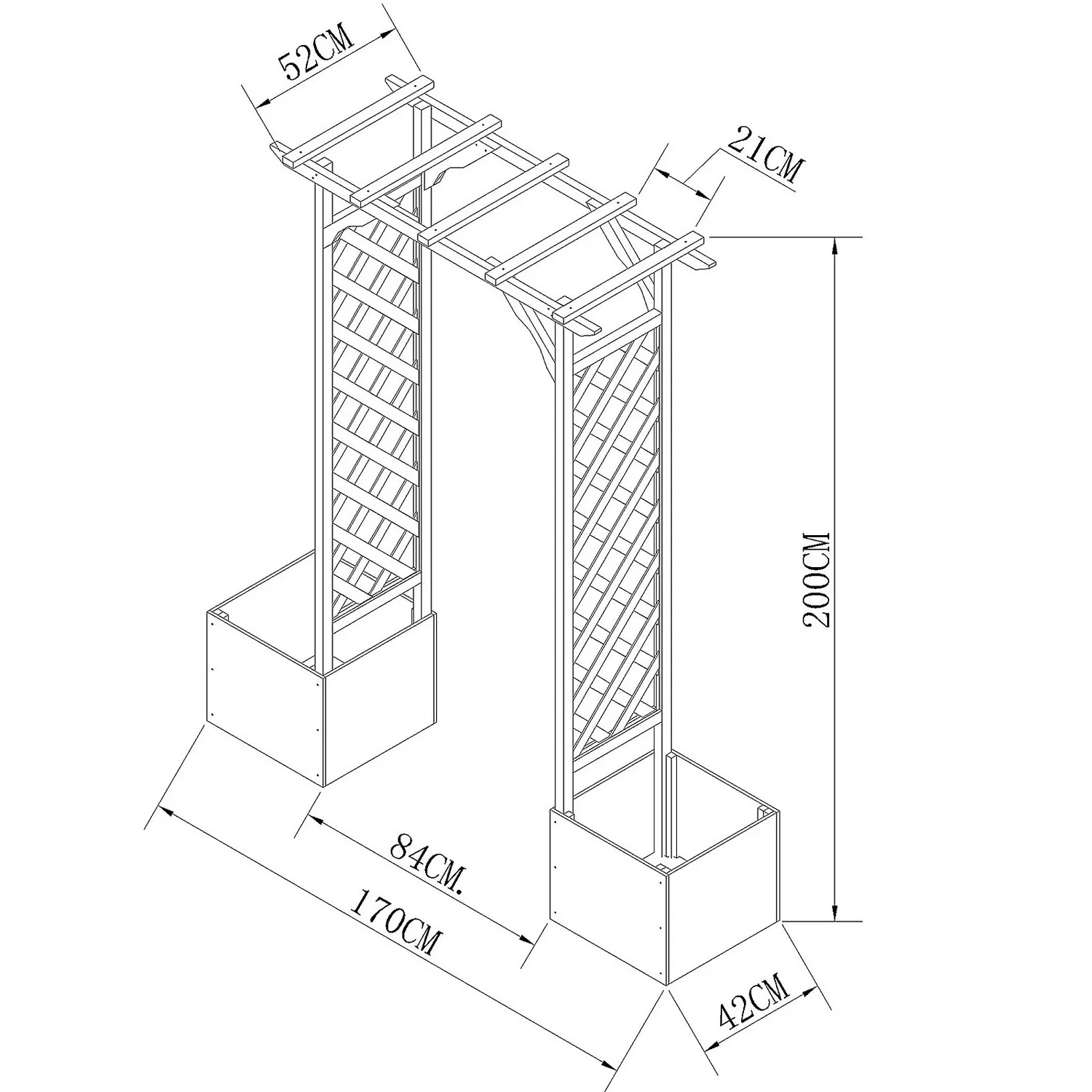 This beautiful garden arch with trellis and side planters will add height and interest to your garden and provide sturdy support for your climbing plants. Add plants such as climbing roses or clematis to trail over the arch and add bedding plants and shrubs to the side planters to create a stunning display.