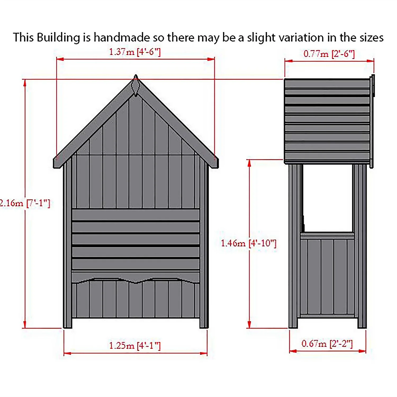 The forget-me-not arbour is an attractive garden feature with a timber clad, apex roof and integral seating with sloping back to add to the comfort. Constructed from top quality pressure treated timber for a longer life. The forget-me-not arbour has a sturdy frame with open sides enabling you to relax and admire your garden. Easy to assemble the forget-me-not-arbour makes a wonderful addition to your garden. Manufactured in the UK from High Northern European FSC certified timber. Dimensions shown are for the exterior wall of the building. (Imperial measurements are rounded so please refer to the metric sizes for accuracy). Supplied in its natural pressure treated finish, painted model shown is for illustration only. Following your order, you will be sent a link to choose your delivery day. On the morning of delivery day you will also receive tracking information.
